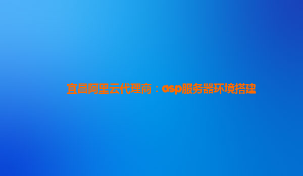 宜昌阿里云代理商:ASP服务器环境搭建指南