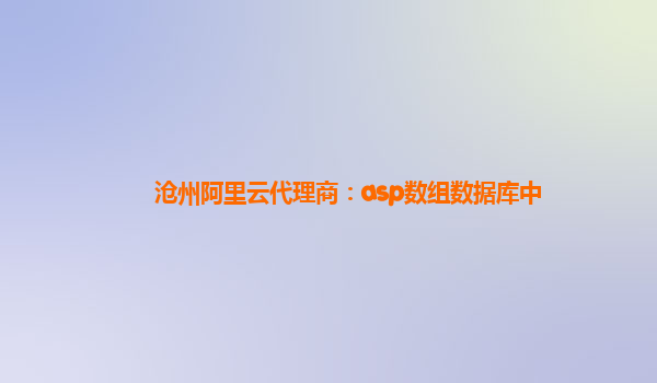 沧州阿里云代理商:ASP数组数据库中的应用及阿里云优势分析