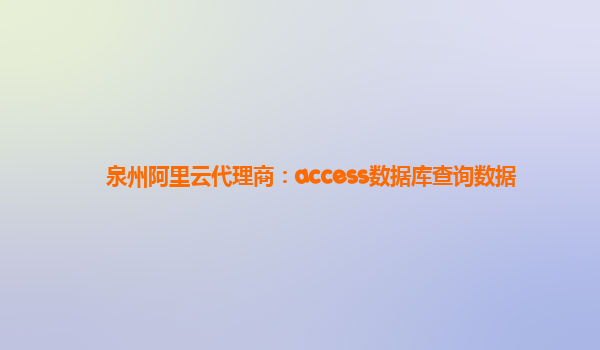 泉州阿里云代理商:利用Access数据库查询数据的优势分析