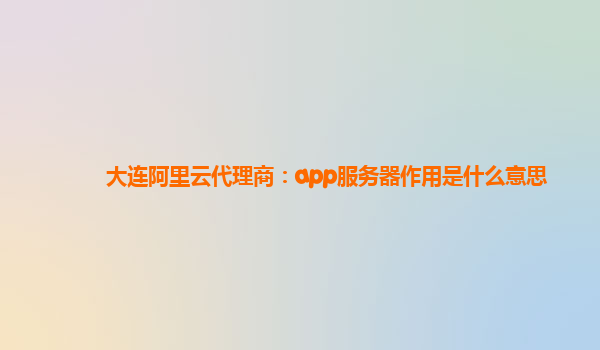 大连阿里云代理商:App服务器的作用及阿里云优势解析