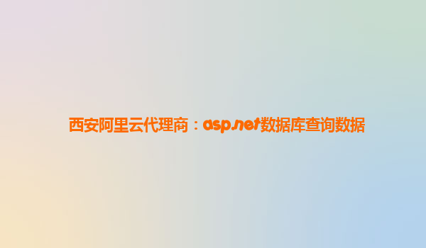 西安阿里云代理商:基于ASP.NET数据库查询的优势解析