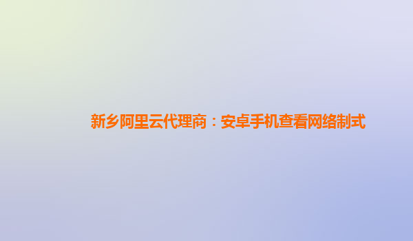 新乡阿里云代理商:安卓手机查看网络制式的优势与方法