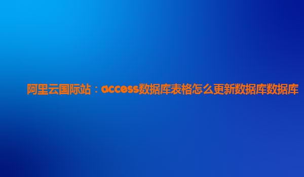 Access数据库是一种常见的关系型数据库管理系统,其提供了简单易用的图形用户界面和强大的数据管理功能。在阿里云国际站上使用Access数据库时,我们可以借助阿里云的强大技术和资源优势来实现数据库的更新操作。