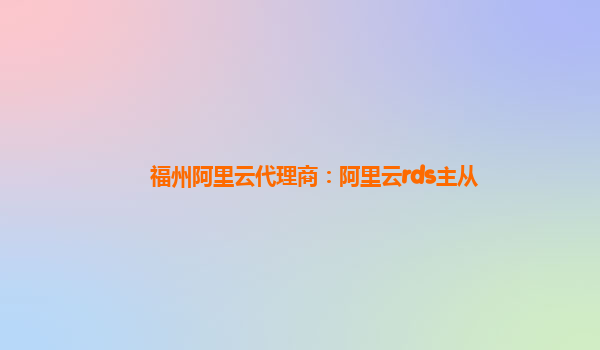 福州阿里云代理商:阿里云RDS主从架构的优势解析