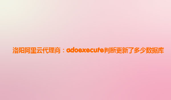 洛阳阿里云代理商:Adoexecute判断更新了多少数据库