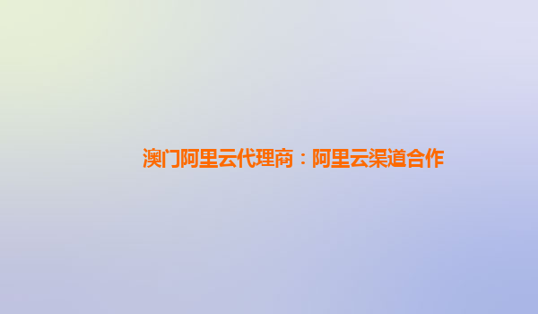 澳门阿里云代理商:阿里云渠道合作