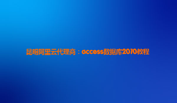 昆明阿里云代理商:Access数据库2010教程与阿里云的优势