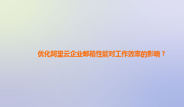 优化阿里云企业邮箱的性能对于提升工作效率具有重要意义。凭借其稳定的服务、强大的安全保障、大容量存储以及全球化布局,阿里云企业邮箱为企业提供了高效的邮件管理平台。通过合理的账户配置、定期清理、提升网络环境以及使用自动化工具,企业能够进一步优化邮箱性能,使员工能够更加专注于核心工作,最终达到提升整体生产力的目的。