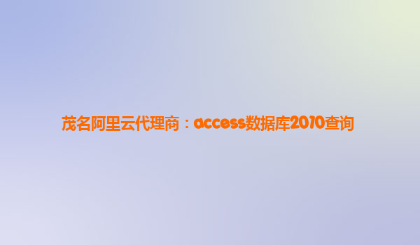 茂名阿里云代理商:Access数据库2010查询的使用与阿里云优势分析