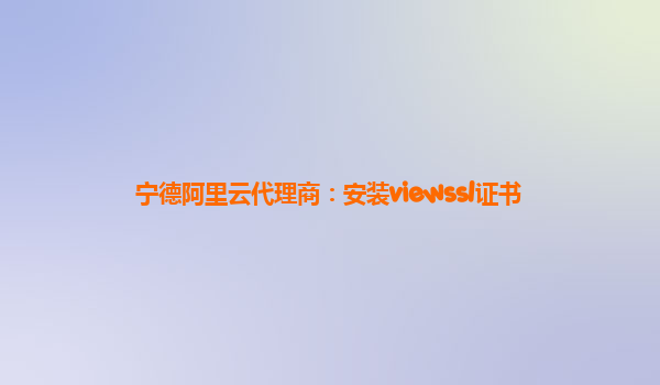 在宁德通过阿里云代理商安装ViewSSL证书的指南