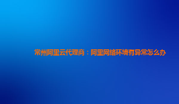 常州阿里云代理商:阿里网络环境异常的应对措施