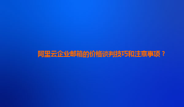 在当今商业环境中,电子邮件是企业沟通的重要工具。阿里云企业邮箱作为市场上知名的电子邮件解决方案之一,凭借其强大的功能和优质的服务吸引了众多企业的关注。在选择阿里云企业邮箱的过程中,价格谈判是一个重要环节。本文将探讨阿里云企业邮箱的价格谈判技巧及注意事项,并结合阿里云企业邮箱及其代理商的优势,为企业在谈判过程中提供指导。