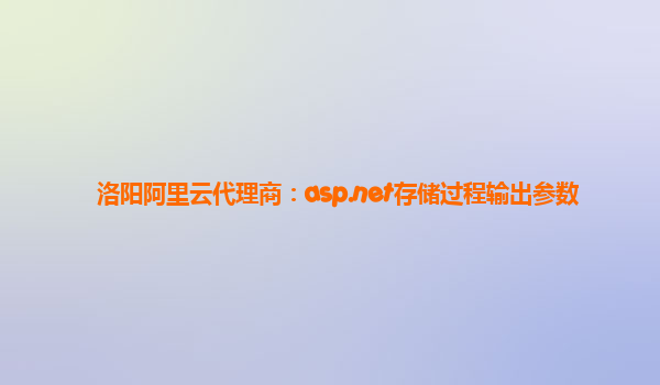 洛阳阿里云代理商:ASP.NET存储过程输出参数