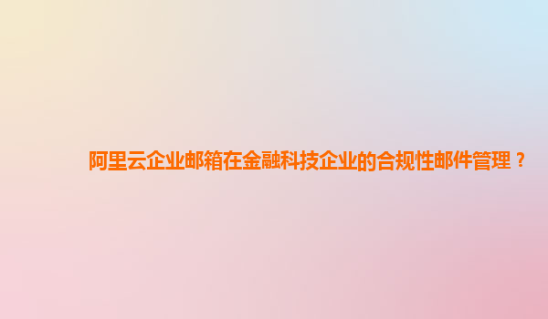 阿里云企业邮箱在金融科技企业的合规性邮件管理