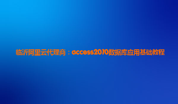 临沂阿里云代理商:Access 2010数据库应用基础教程