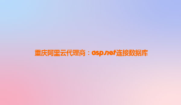 如何通过ASP.NET连接数据库:结合阿里云的优势