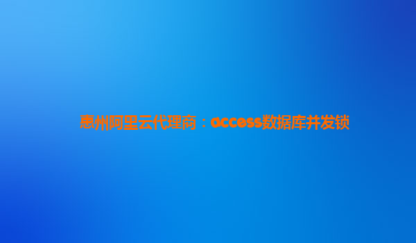 惠州阿里云代理商:Access数据库并发锁