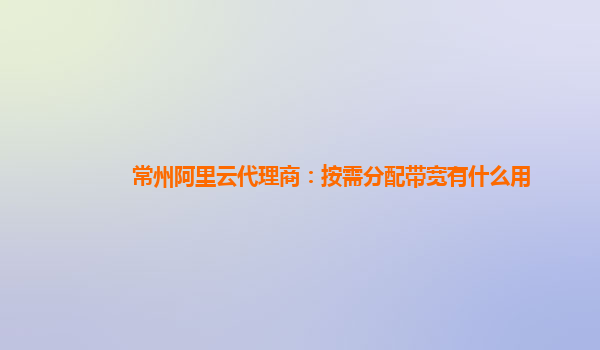 常州阿里云代理商:按需分配带宽有什么用