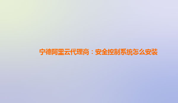 宁德阿里云代理商:安全控制系统怎么安装