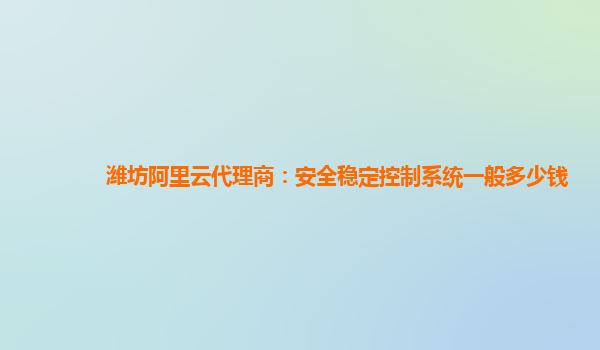 潍坊阿里云代理商:安全稳定控制系统一般多少钱