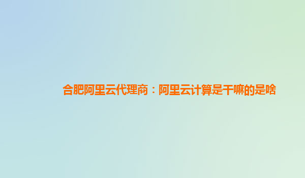 合肥阿里云代理商:阿里云计算是干嘛的?