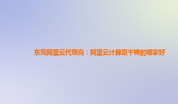 东莞阿里云代理商:阿里云计算是干嘛的?哪家好?
