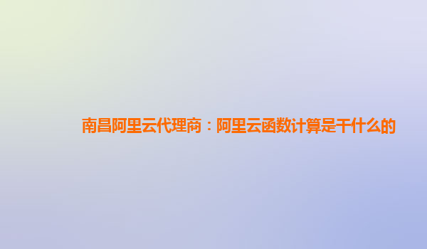 南昌阿里云代理商:阿里云函数计算是干什么的