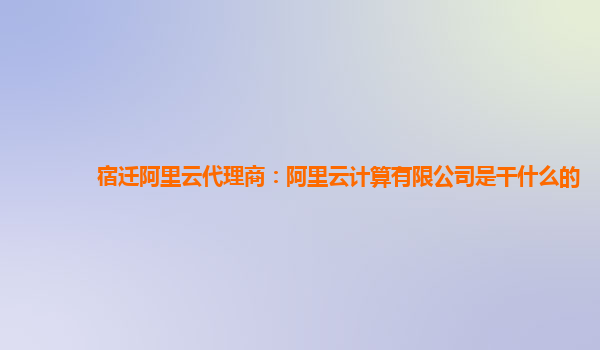 宿迁阿里云代理商:阿里云计算有限公司是干什么的