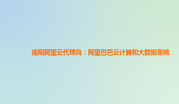 阿里巴巴云计算和大数据:南阳阿里云代理商的优势与应用