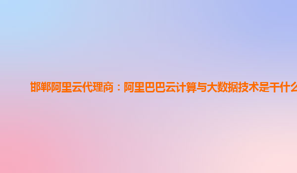邯郸阿里云代理商:阿里巴巴云计算与大数据技术是干什么的