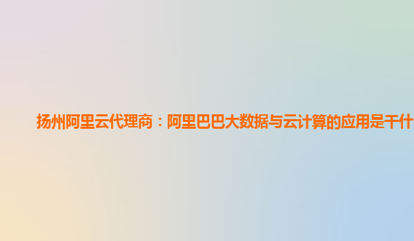 扬州阿里云代理商:阿里巴巴大数据与云计算的应用是干什么的