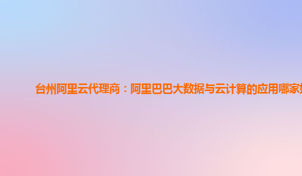 台州阿里云代理商:阿里巴巴大数据与云计算的应用哪家好