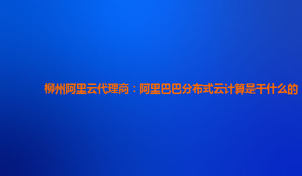 柳州阿里云代理商:阿里巴巴分布式云计算是干什么的
