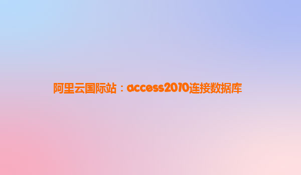 阿里云国际站(Alibaba Cloud)提供了强大的云计算服务和基础设施,帮助全球用户搭建高效、稳定的应用环境。本文将介绍如何通过Microsoft Access 2010连接阿里云数据库,并结合阿里云的优势和易用性,阐述为什么阿里云是企业进行数据存储与管理的理想选择。