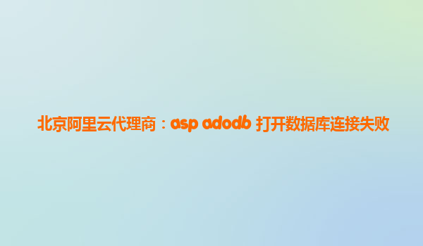 北京阿里云代理商:解决ASP ADODB数据库连接失败问题