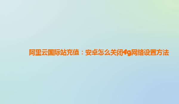 阿里云国际站充值:安卓怎么关闭4G网络设置方法