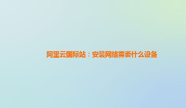 阿里云国际站:安装网络需要什么设备