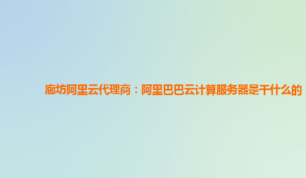 廊坊阿里云代理商:阿里巴巴云计算服务器是干什么的