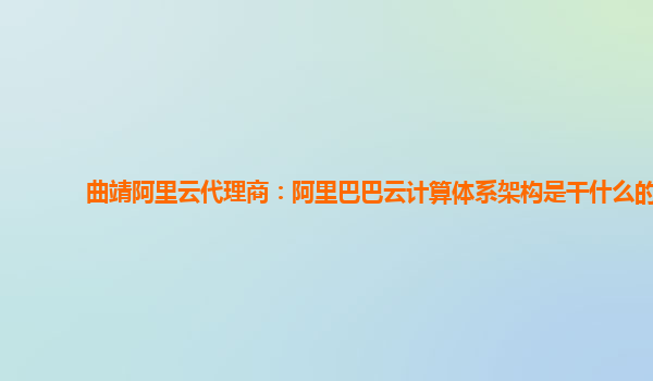 曲靖阿里云代理商:阿里巴巴云计算体系架构介绍