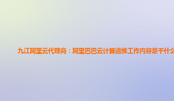 九江阿里云代理商:阿里巴巴云计算运维工作内容是干什么的
