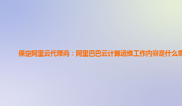 保定阿里云代理商:阿里巴巴云计算运维工作内容解析
