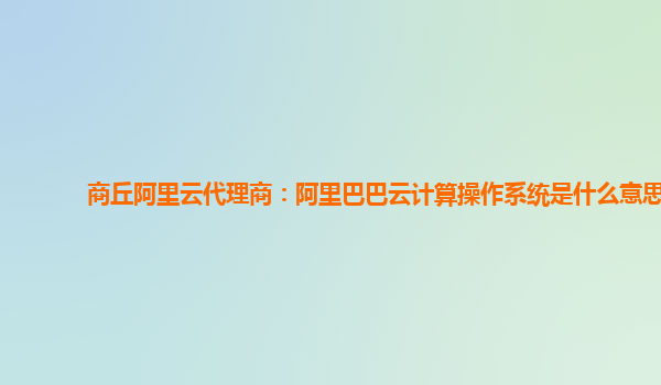 商丘阿里云代理商:阿里巴巴云计算操作系统是什么意思