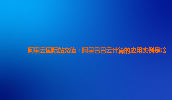 阿里云国际站充值:阿里巴巴云计算的应用实例及其优势