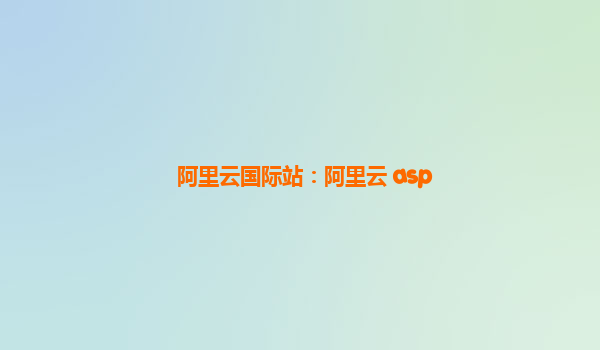 阿里云国际站:阿里云 ASP 服务解析与优势