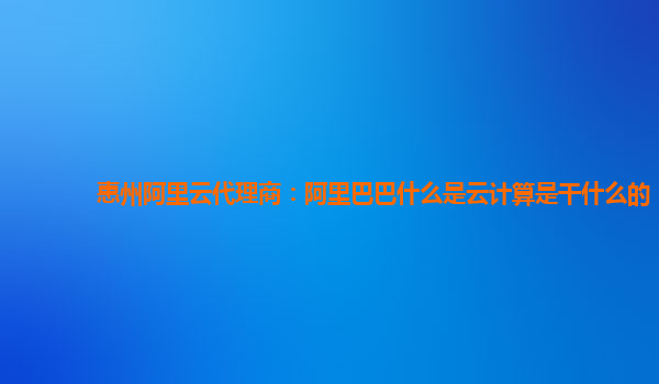 惠州阿里云代理商:阿里巴巴什么是云计算,云计算是干什么的?