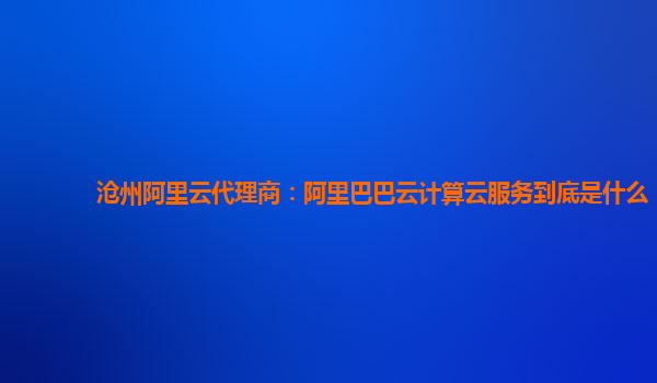 沧州阿里云代理商:阿里巴巴云计算云服务到底是什么