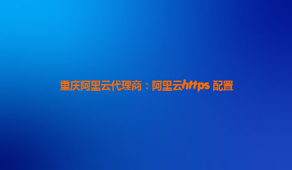 重庆阿里云代理商:阿里云 HTTPS 配置