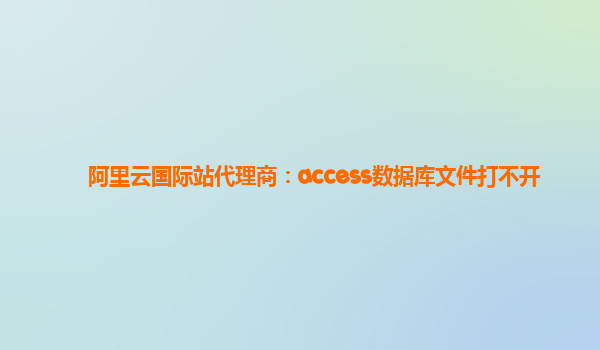 阿里云国际站代理商:Access数据库文件打不开的解决方案