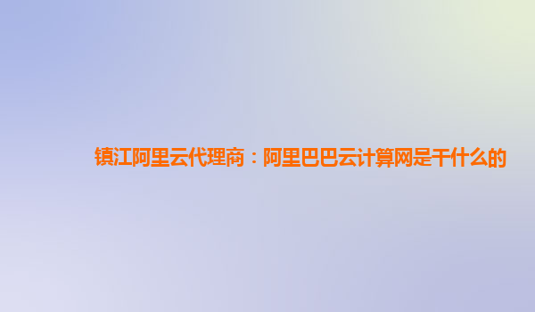 镇江阿里云代理商:阿里巴巴云计算网是干什么的