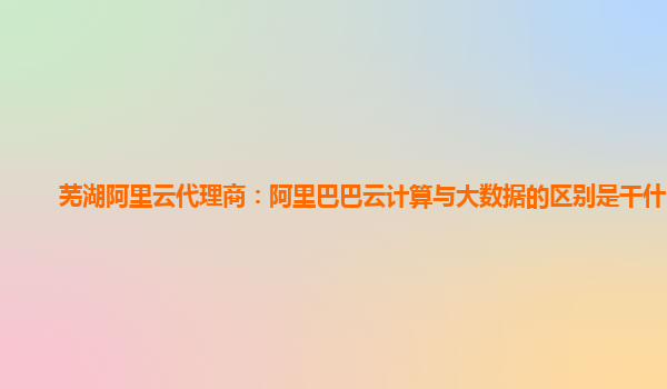 芜湖阿里云代理商:阿里巴巴云计算与大数据的区别是干什么的